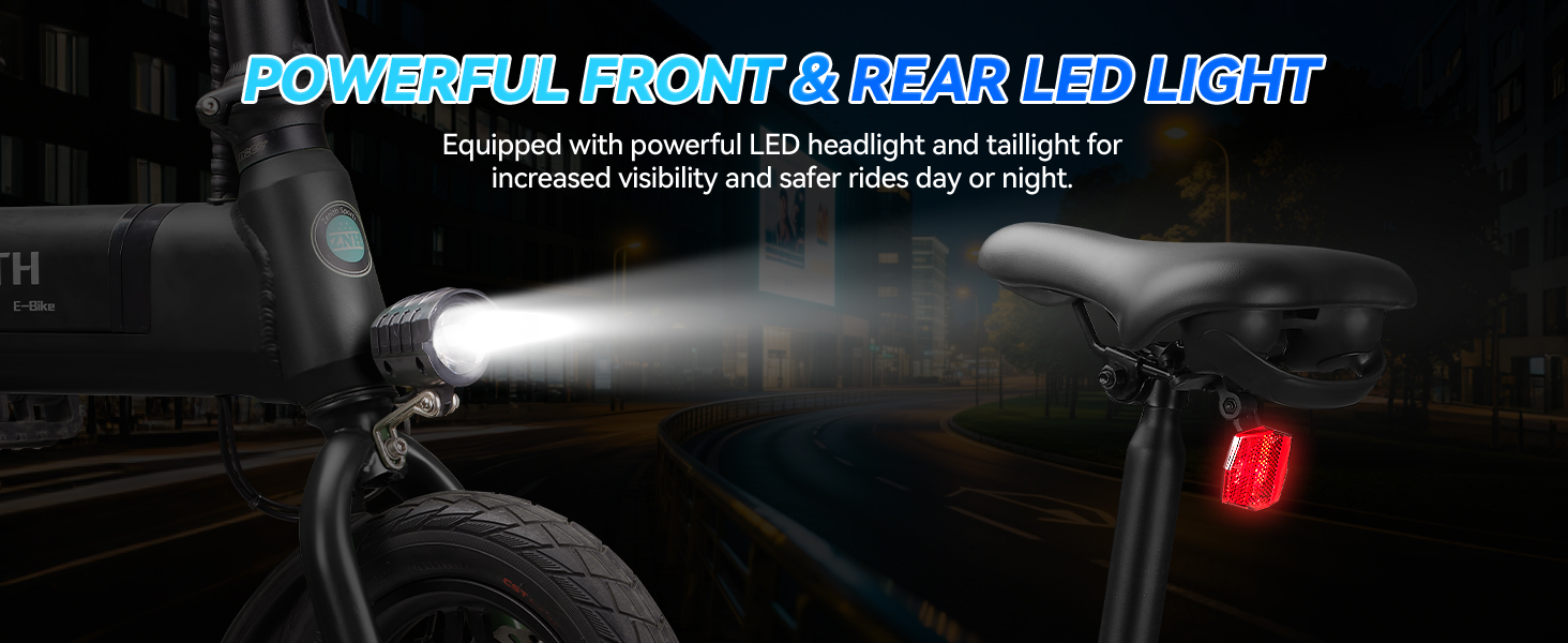 12” puncture-resistant tires, front and rear disc brakes, and a stable frame let this e-bike handle bumps and turns with ease and safety.
