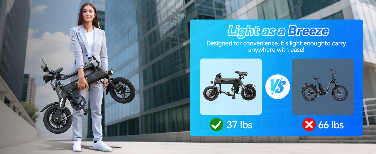 Weighing only 37 lbs, this compact electric bike is perfect for teens, students, and smaller riders. The minimalist design suits city life and daily commutes.